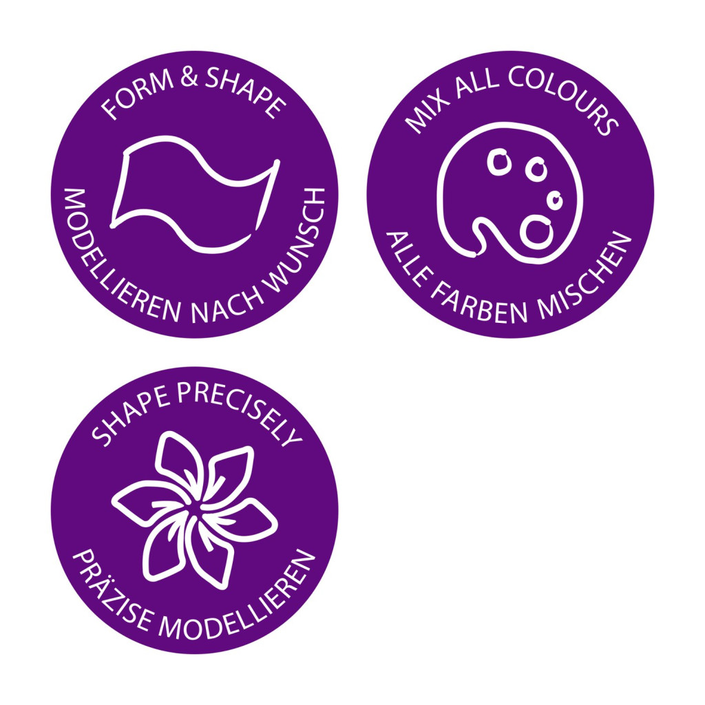 A FIMO Professional gyurmát 110°C-on kell sütni, 30 percen át, minden 15 mm vastagságra vetítve. Fontos, hogy ne lépd túl a hőmérsékletet, mert az elszínezetéshez vagy a felület károsodásához vezethet.